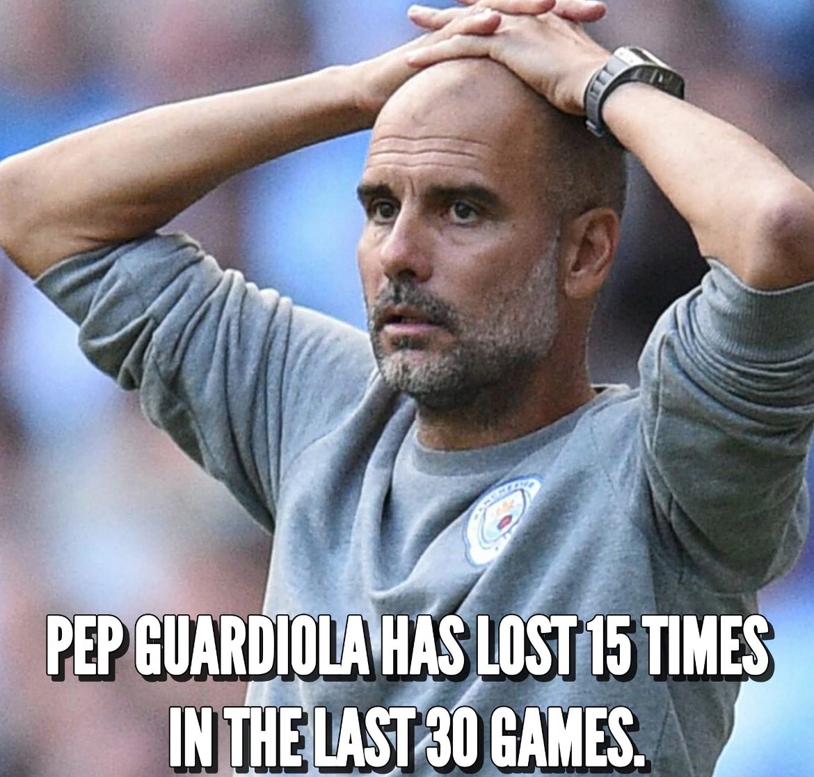 瓜迪奧拉最近30場(chǎng)比賽已經(jīng)輸了15場(chǎng)?